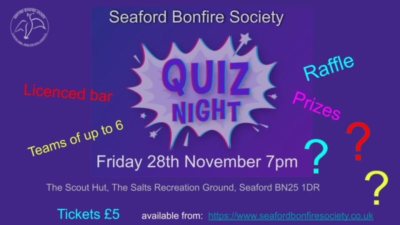 The popular Seaford Bonfire Society Quiz Night is back at a new venue! Get your tickets now before they sell out.