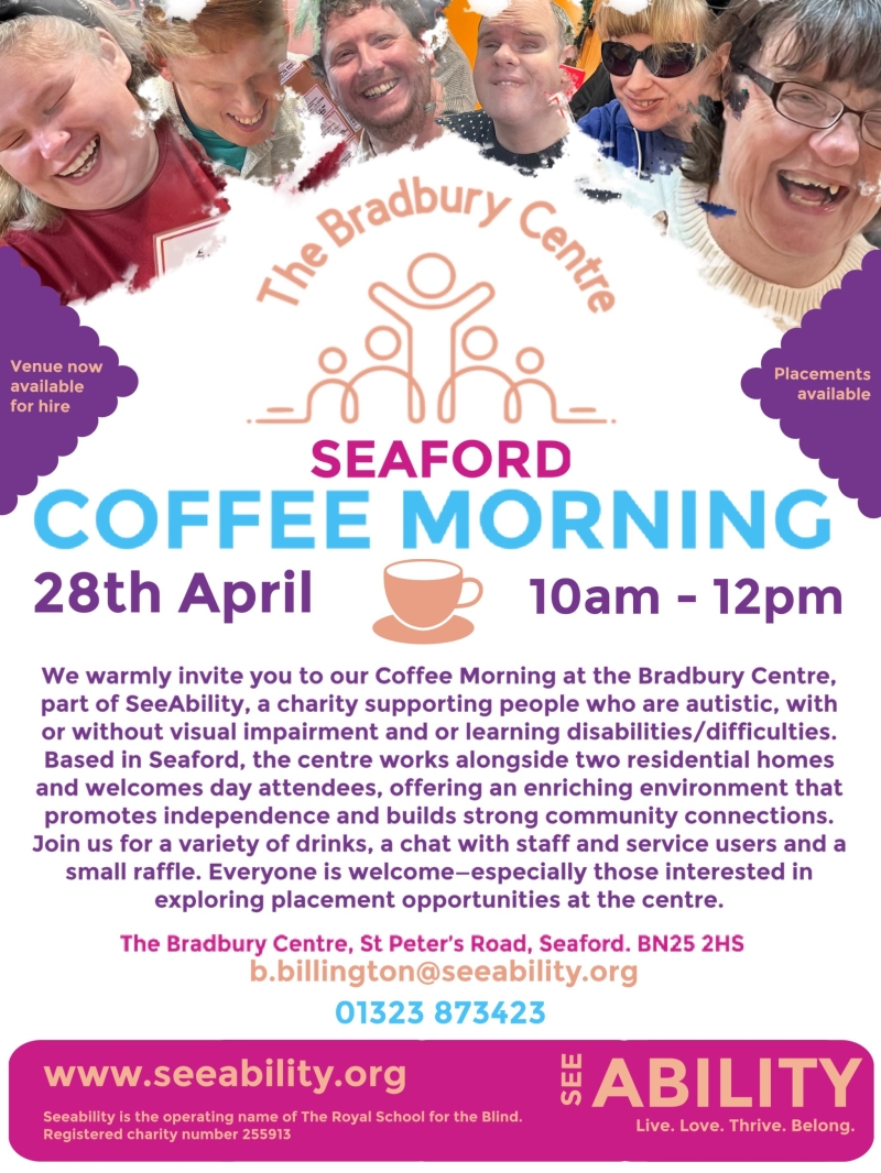 You are warmly invited to join service users and staff at the Bradbury Centre for their coffee morning.  There will be a raffle and an opportunity to see all that the centre has on offer!