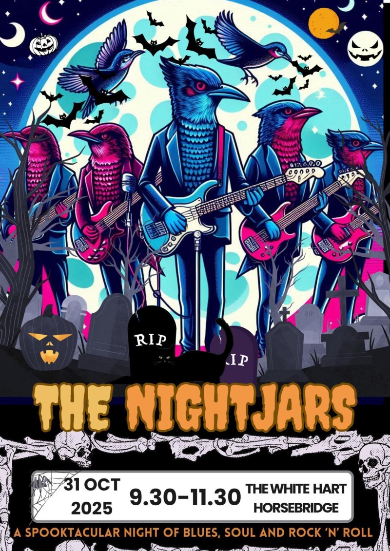 The Nightjars- local blues, soul and rock ‘n’ roll band are making their debut at the White Hart, Horsebridge, playing a mix of party bangers from across the decades with a few spooky tunes chucked into the mix!