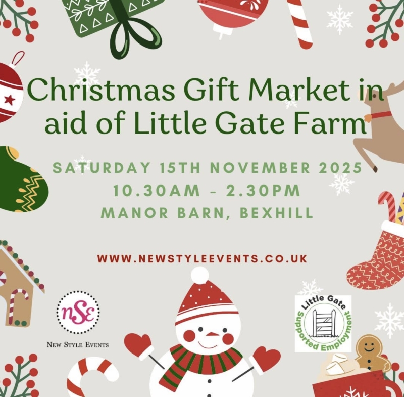 The annual Christmas market in aid of the fabulous charity Little Gate Farm will take place on Saturday 15th November at the Manor Barn, Bexhill between 10.30am and 2.30pm.